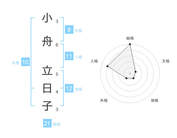 小舟 立日子さんを姓名の画数から五運を鑑定