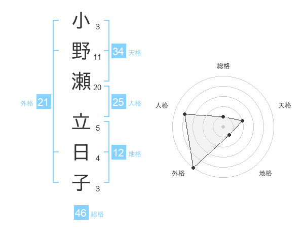 小野瀬 立日子さんを姓名の画数から五運を鑑定