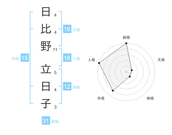 日比野 立日子さんを姓名の画数から五運を鑑定