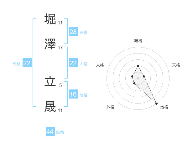 堀澤 立晟さんの総格は44画の2点!