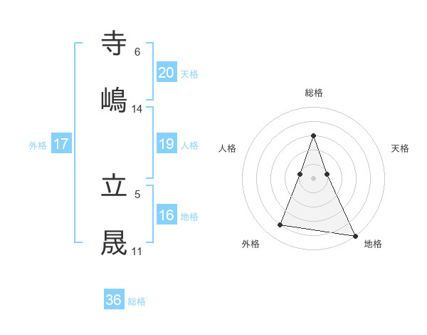 寺嶋 立晟さんを姓名の画数から五運を鑑定