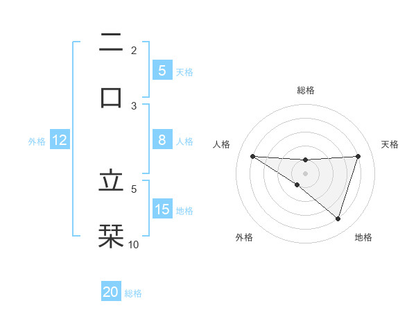 二口 立栞さんの総格は20画の1点!