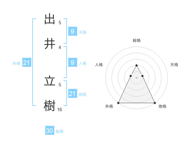 出井 立樹さんの外格は21画の5点!