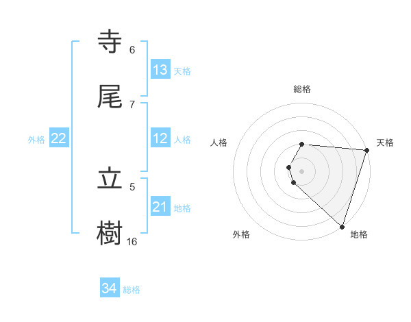 寺尾 立樹さんの地格は21画の5点!