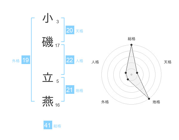 小磯 立燕さんを姓名の画数から五運を鑑定