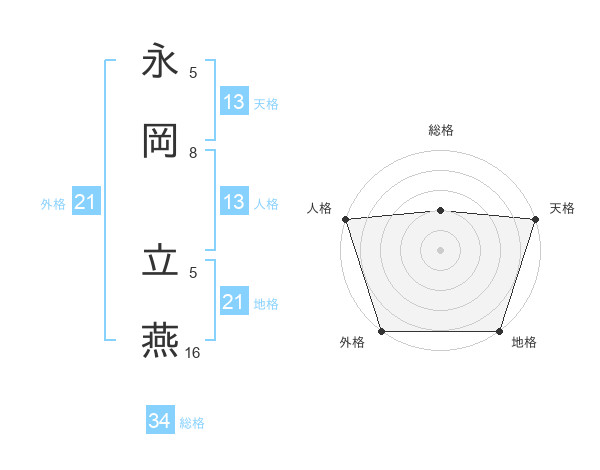 永岡 立燕さんの天格は13画の5点!