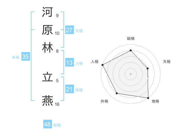 河原林 立燕さんを姓名の画数から五運を鑑定