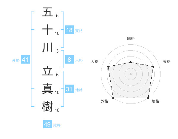 五十川 立真樹さんを姓名の画数から五運を鑑定