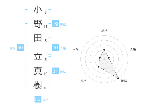 小野田 立真樹さんの総格は50画の2点!