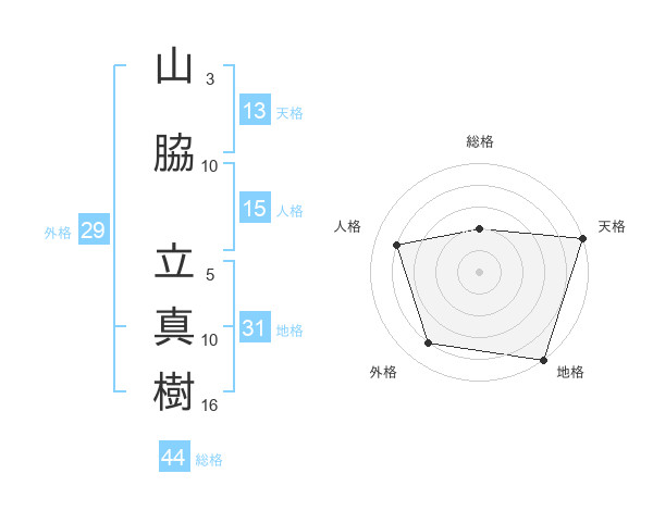 山脇 立真樹さんの総格は44画の2点