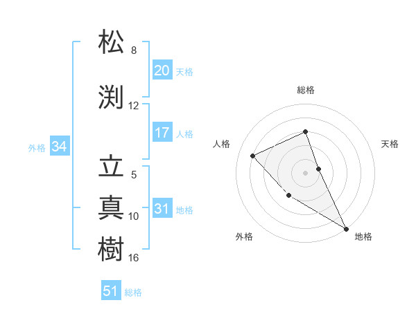 松渕 立真樹さんを姓名の画数から五運を鑑定