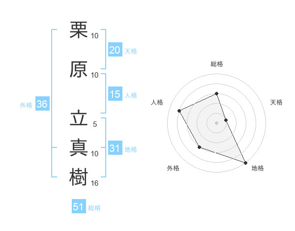 栗原 立真樹さんの総格は51画の3点!