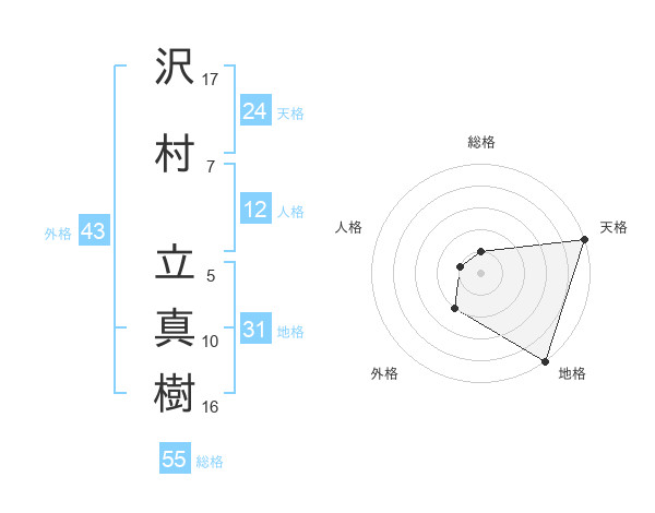 沢村 立真樹さんを姓名の画数から五運を鑑定