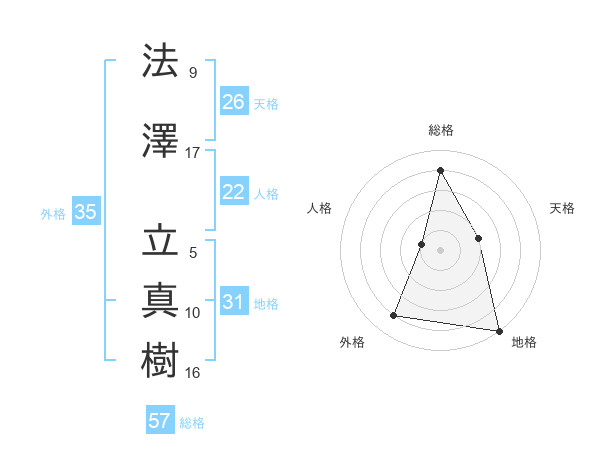 法澤 立真樹さんの総格は57画の4点!