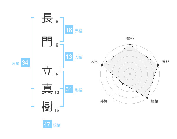 長門 立真樹さんを姓名の画数から五運を鑑定
