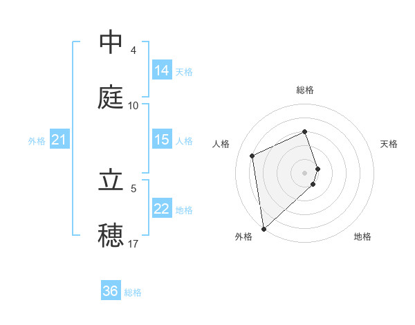 中庭 立穂さんの外格は21画の5点!