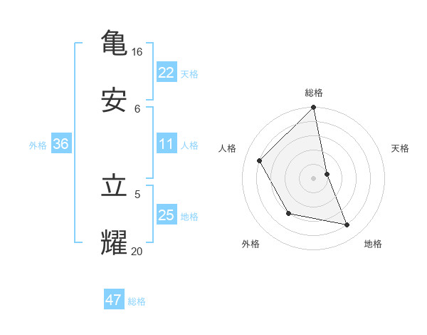 亀安 立耀さんを姓名の画数から五運を鑑定
