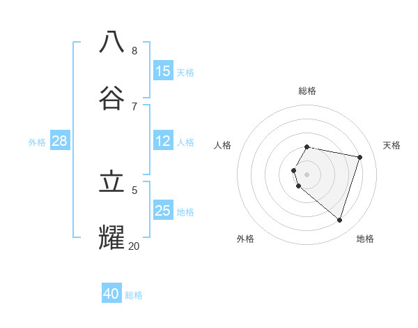 八谷 立耀さんを姓名の画数から五運を鑑定