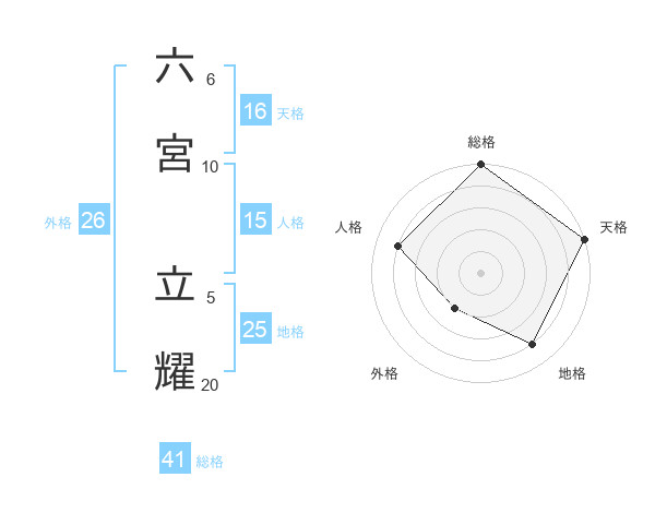 六宮 立耀さんの総格は41画の5点!