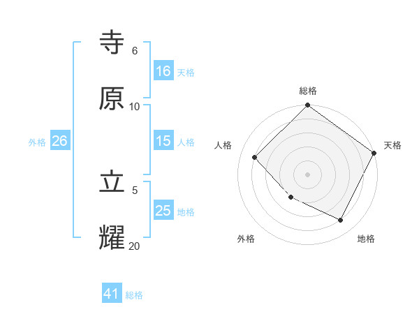 寺原 立耀さんを姓名の画数から五運を鑑定