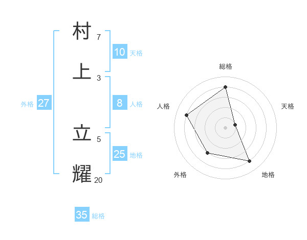 村上 立耀さんの総格は35画の4点!