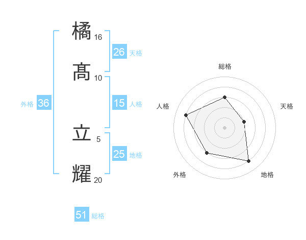 橘髙 立耀さんの総格は51画の3点!