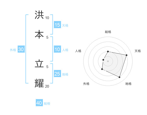洪本 立耀さんの総格は40画の2点!