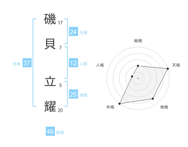 磯貝 立耀さんの外格は37画の5点!