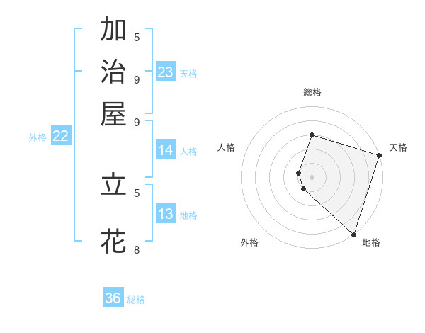 加治屋 立花さんの天格は23画の5点!
