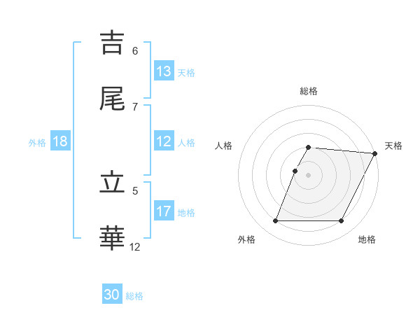 吉尾 立華さんの天格は13画の5点!