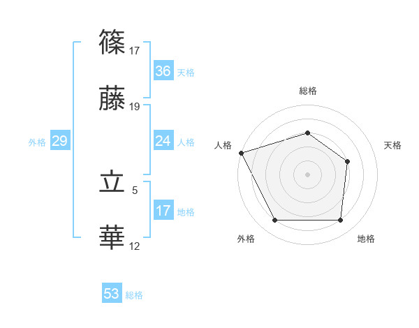 篠藤 立華さんの総格は53画の3点
