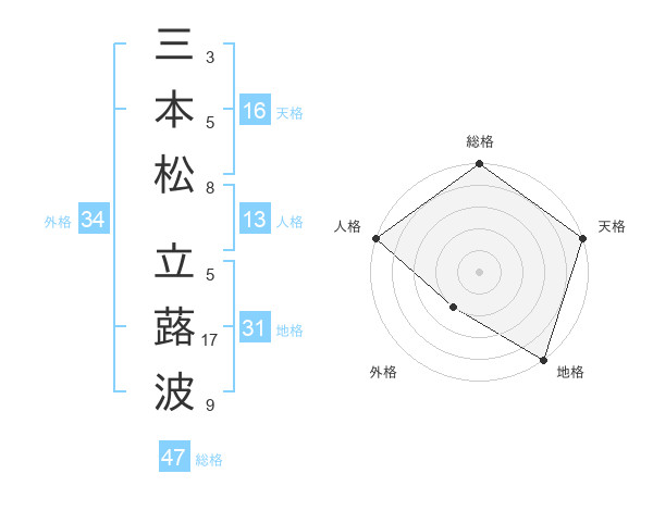 三本松 立蕗波さんの総格は47画の5点!