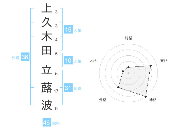 上久木田 立蕗波さんを姓名の画数から五運を鑑定