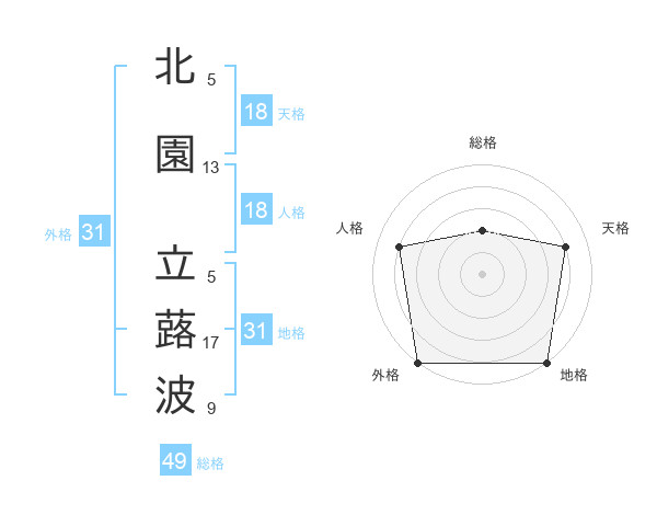 北園 立蕗波さんを姓名の画数から五運を鑑定