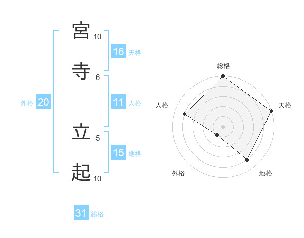宮寺 立起さんを姓名の画数から五運を鑑定