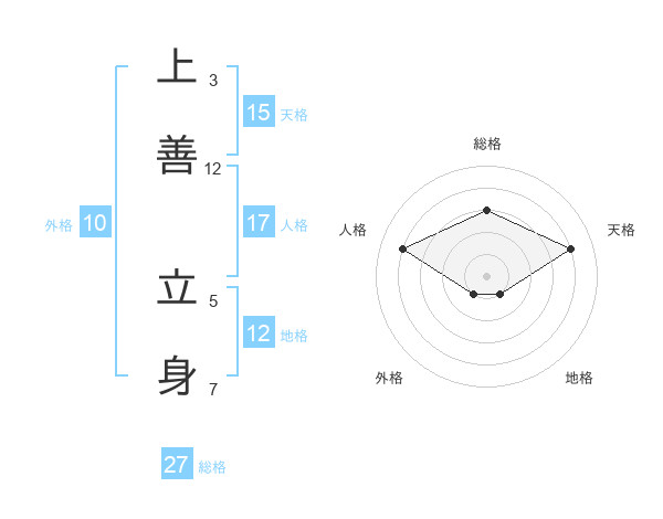 上善 立身さんの地格は12画の1点!