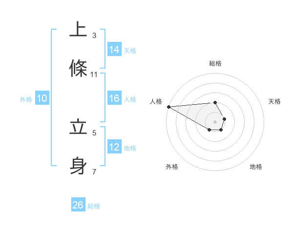上條 立身さんの総格は26画の2点!