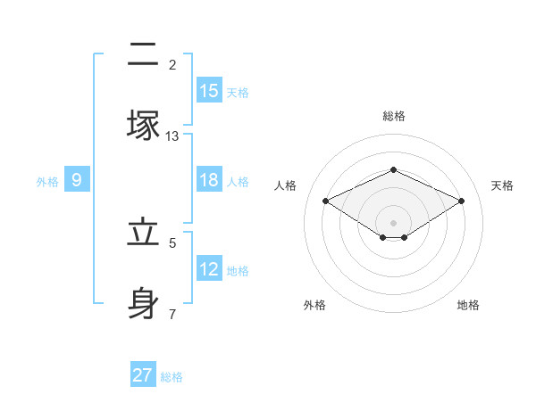 二塚 立身さんの総格は27画の3点!
