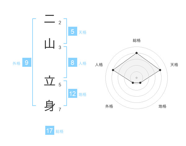 二山 立身さんの総格は17画の4点!