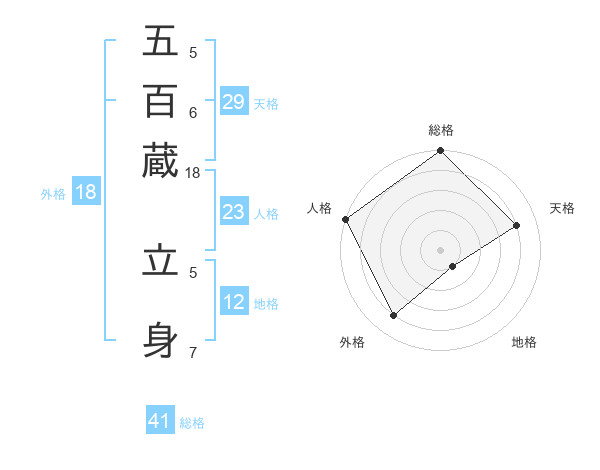 五百蔵 立身さんを姓名の画数から五運を鑑定