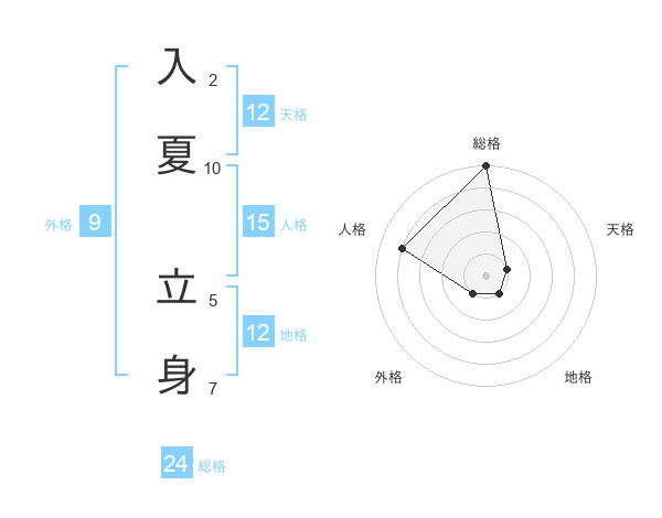 入夏 立身さんの総格は24画の5点!