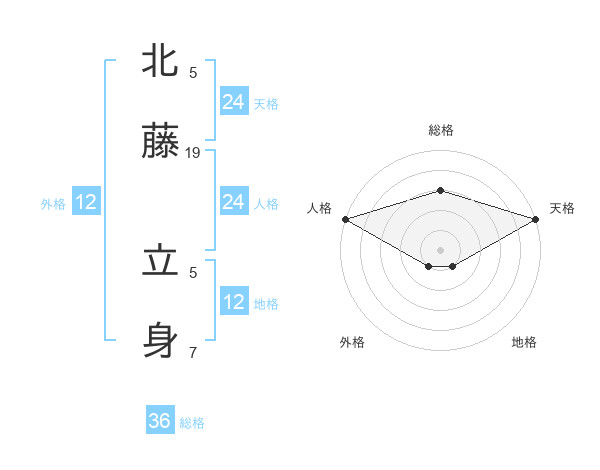 北藤 立身さんの天格は24画の5点!