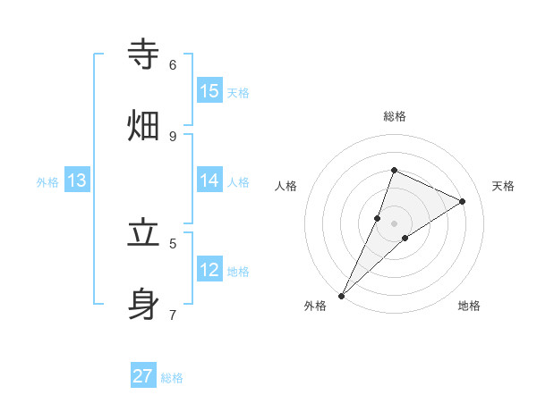 寺畑 立身さんの総格は27画の3点!