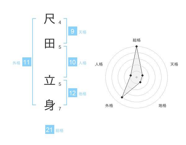 尺田 立身さんの総格は21画の5点!