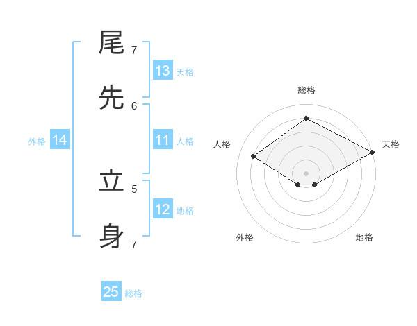 尾先 立身さんの天格は13画の5点!