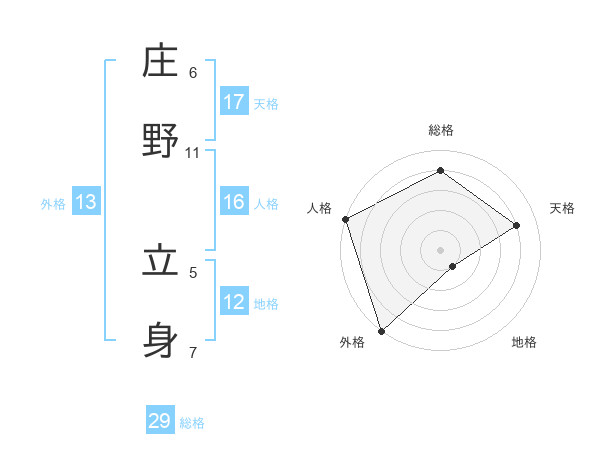 庄野 立身さんの外格は13画の5点!