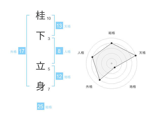 桂下 立身さんの天格は13画の5点!