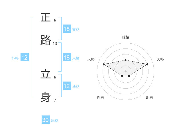 正路 立身さんの天格は18画の4点!