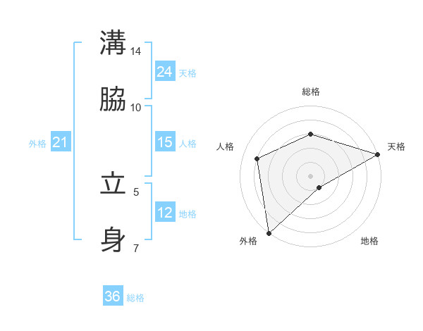 溝脇 立身さんの天格は24画の5点!