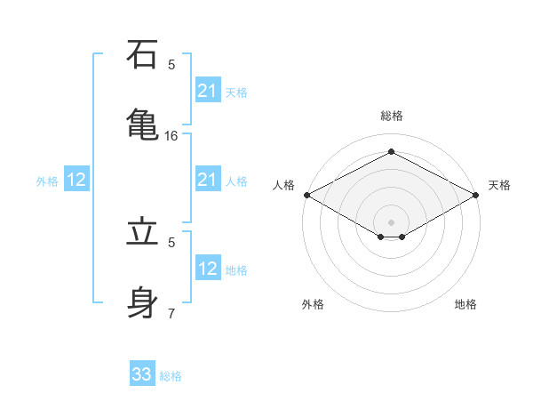 石亀 立身さんの天格は21画の5点!